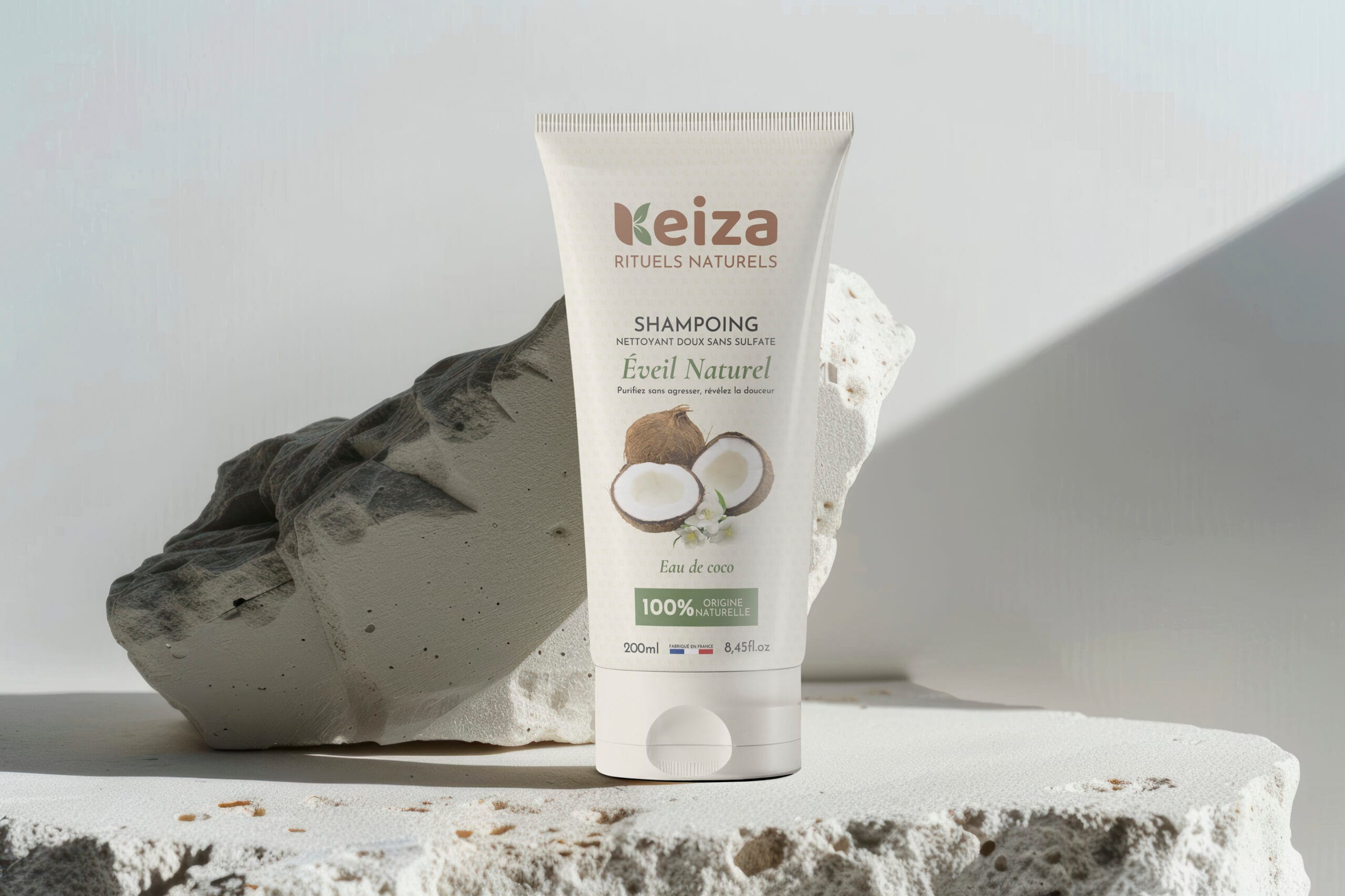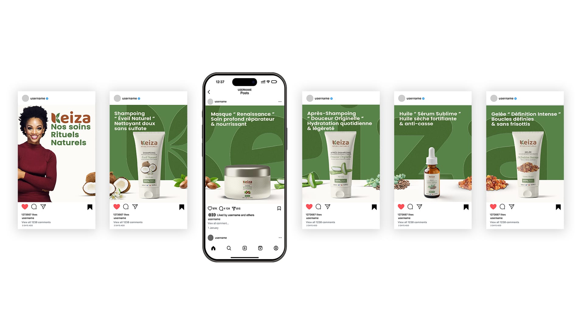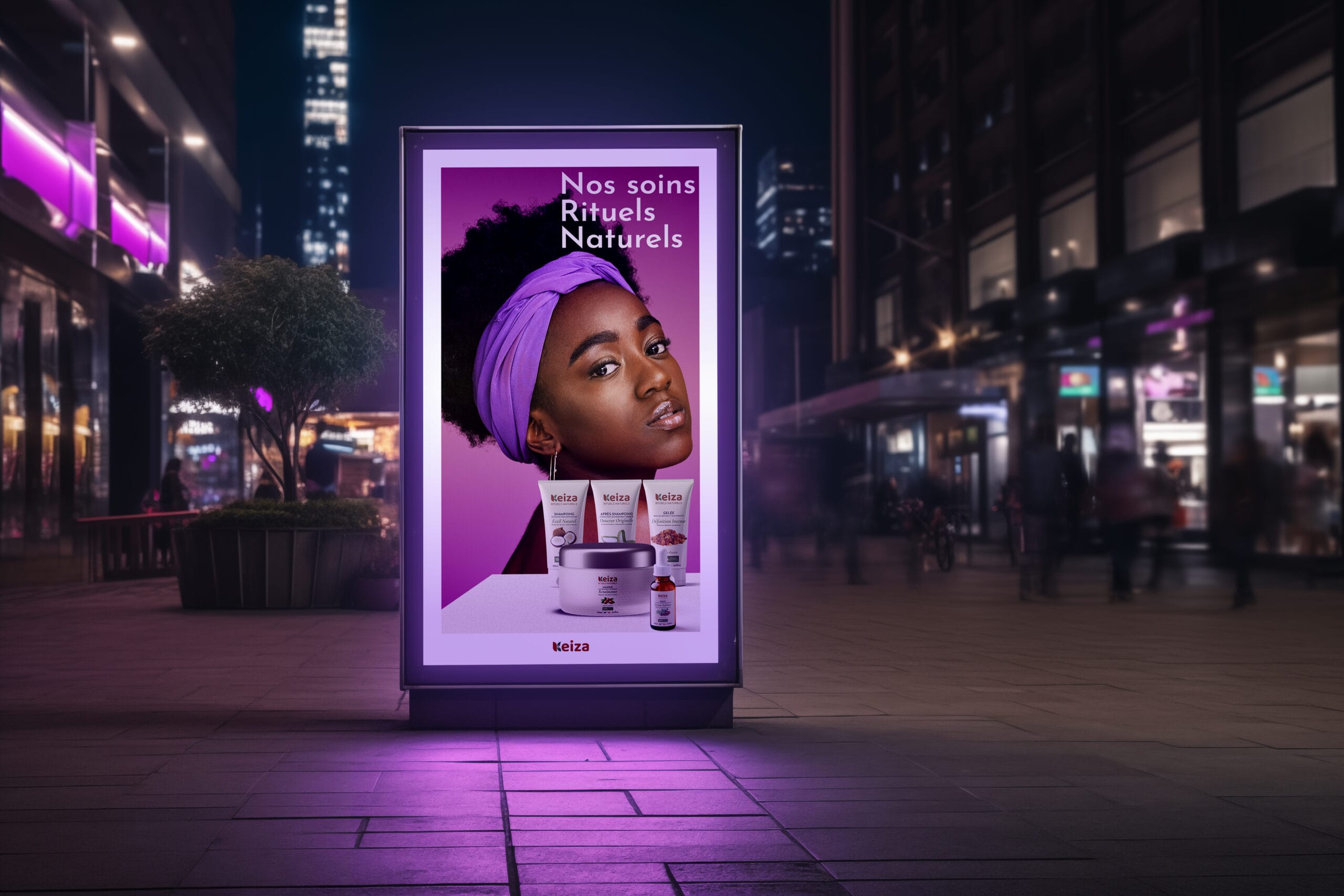 Création complète de la marque KEIZA, spécialisée en soins capillaires naturels pour cheveux texturés.